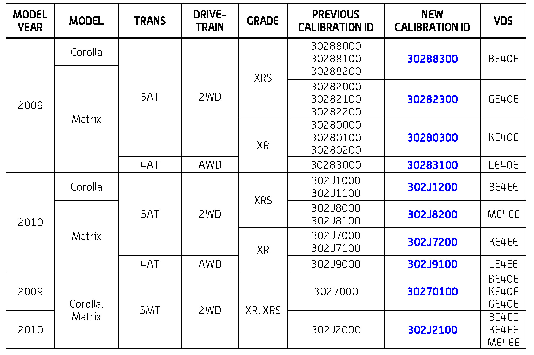 - Calibration ID(s) [Refer to the Calibration Identification Chart for the NEW CALIBRATION ID]