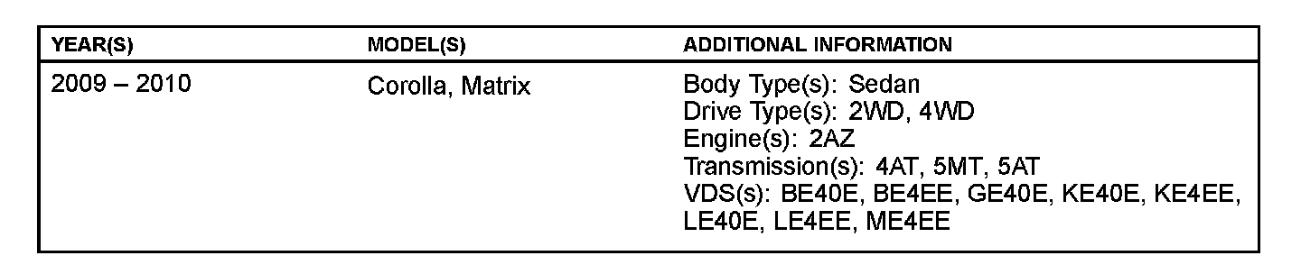 Refer to the Technical Information System (TIS) 2009 model year Corolla or Matrix Repair Manual:
