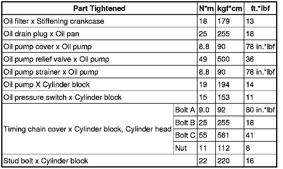 SPECIFICATIONS: 2AZ-FE LUBRICATION: TORQUE SPECIFICATIONS