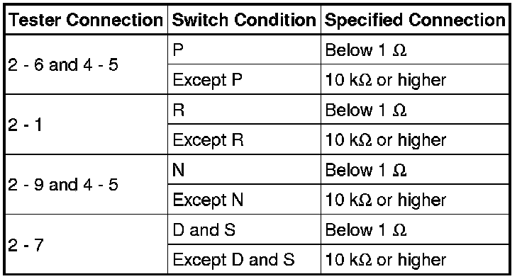 U250E AUTOMATIC TRANSMISSION / TRANSAXLE: PARK / NEUTRAL POSITION SWITCH: INSPECTION