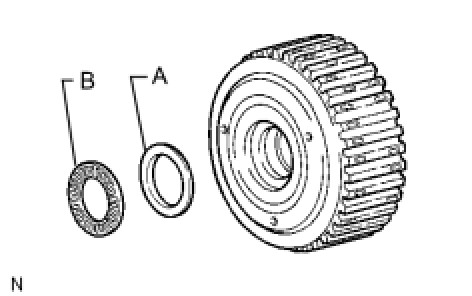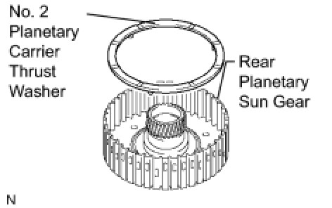 (a) Coat the No. 2 planetary carrier thrust washer with ATF, and install it onto the rear planetary sun gear.