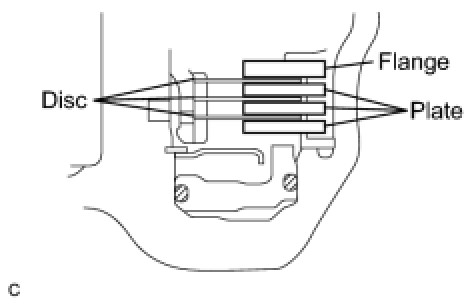 (b) Install the 3 discs, 3 plates and flange to the transaxle case.