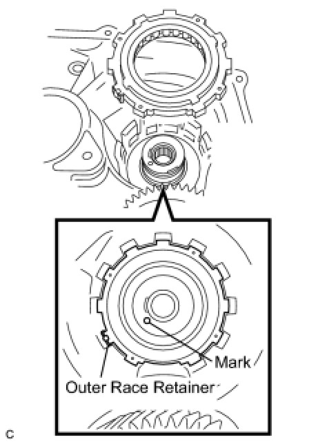 Ensure that the outer race retainer and the mark on the transaxle case are aligned.
