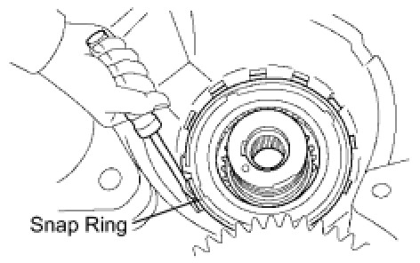 The snap ring should be securely engaged in the groove of the transaxle case.