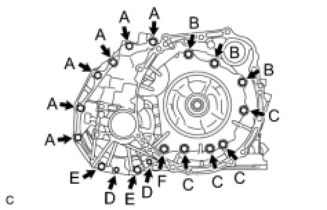 (c) Install the transaxle housing to the transaxle case with the 18 bolts.