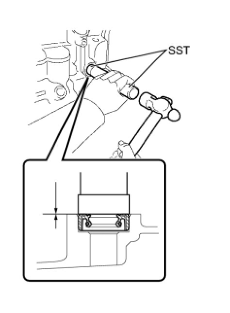 (b) Using SST and a hammer, install the oil seal to the transaxle case.