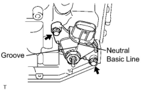 (a) Install the park/neutral position switch onto the manual valve lever shaft and temporarily install the 2 adjusting bolts.