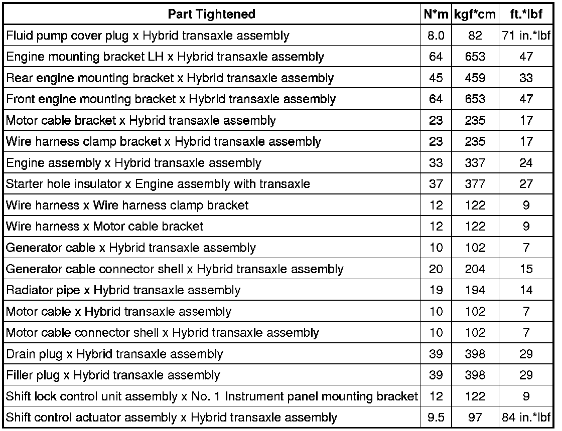 SPECIFICATIONS: P410 HYBRID TRANSMISSION / TRANSAXLE: TORQUE SPECIFICATIONS