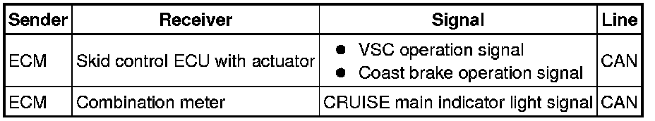 * The ECM receives signals such as ON-OFF, -SET (SET / COAST), +RES (RESUME / ACCEL), and CANCEL from the cruise control switch.