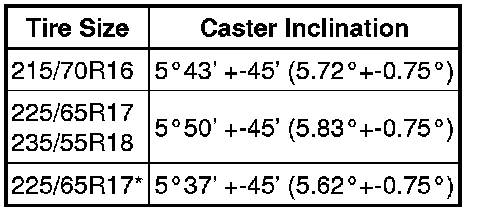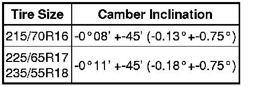 * If the camber is not within the specification, estimate how much additional camber adjustment will be required and select the camber adjusting bolt using the following table.