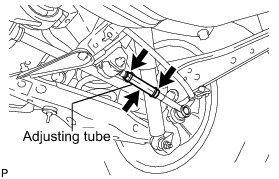 (1) If the toe-in value deviates towards the inside, turn the adjusting tube of the shorter No. 1 suspension arm assembly in the direction which increases arm length until the difference between the left and right suspension arms is within the specification.