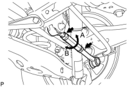 * When the adjusting tube of the rear No. 1 suspension arm assembly LH is turned one revolution in the direction of B in the illustration, the toe-in changes to the outside by approximately 3.7 mm (0.146 in.).