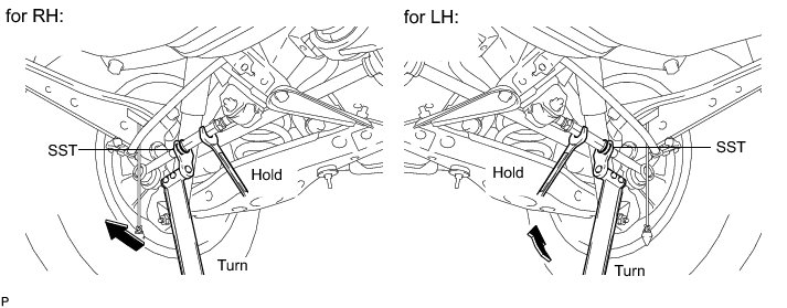(d) If the difference between the length of the left and right rear No. 1 suspension arms is not within the specification, adjust the value to within the specification using the method below.