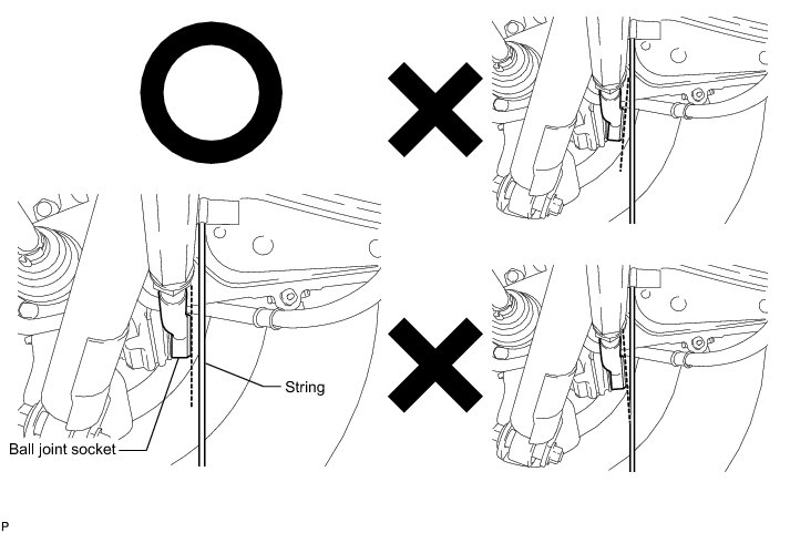 If the ball joint socket is at an angle of 5° or more with respect to the string, perform steps *5 to *9 again.