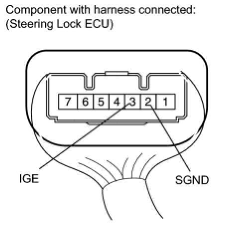 (a) Immediately after turning the engine switch on (IG), inspect the voltage between terminals 3 (IGE) and 2 (SGND) of the steering lock ECU.