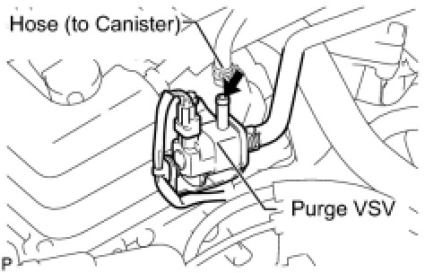 (b) Disconnect the hose (connected to the canister) from the purge VSV.