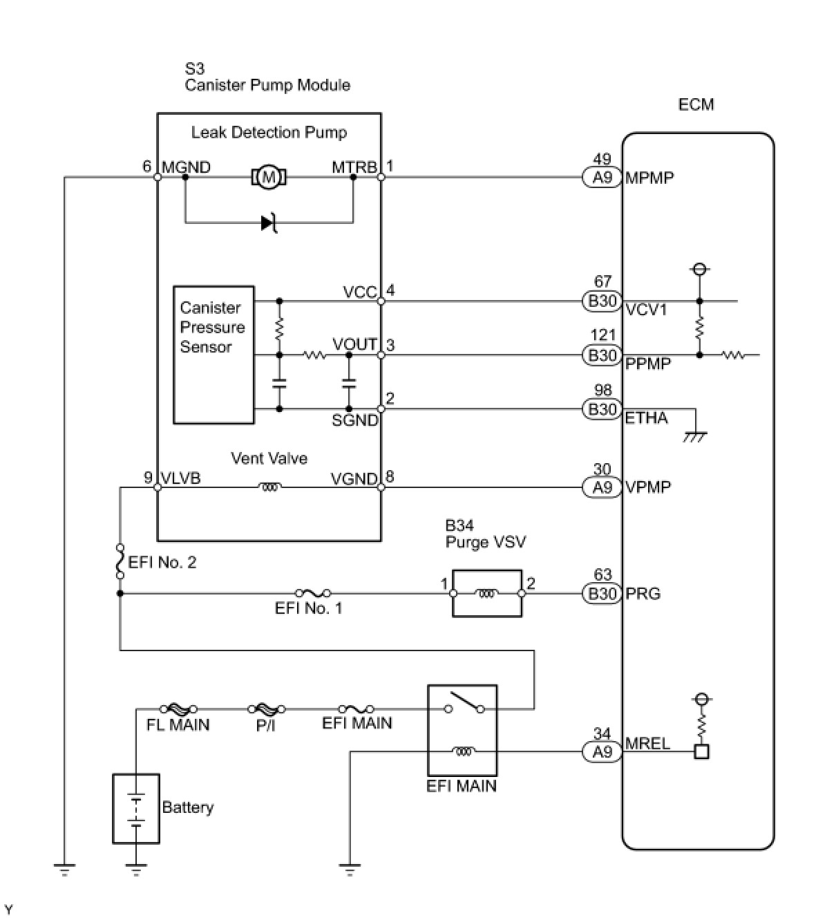 B -- INSPECT CANISTER PUMP MODULE (POWER SOURCE FOR VENT VALVE)