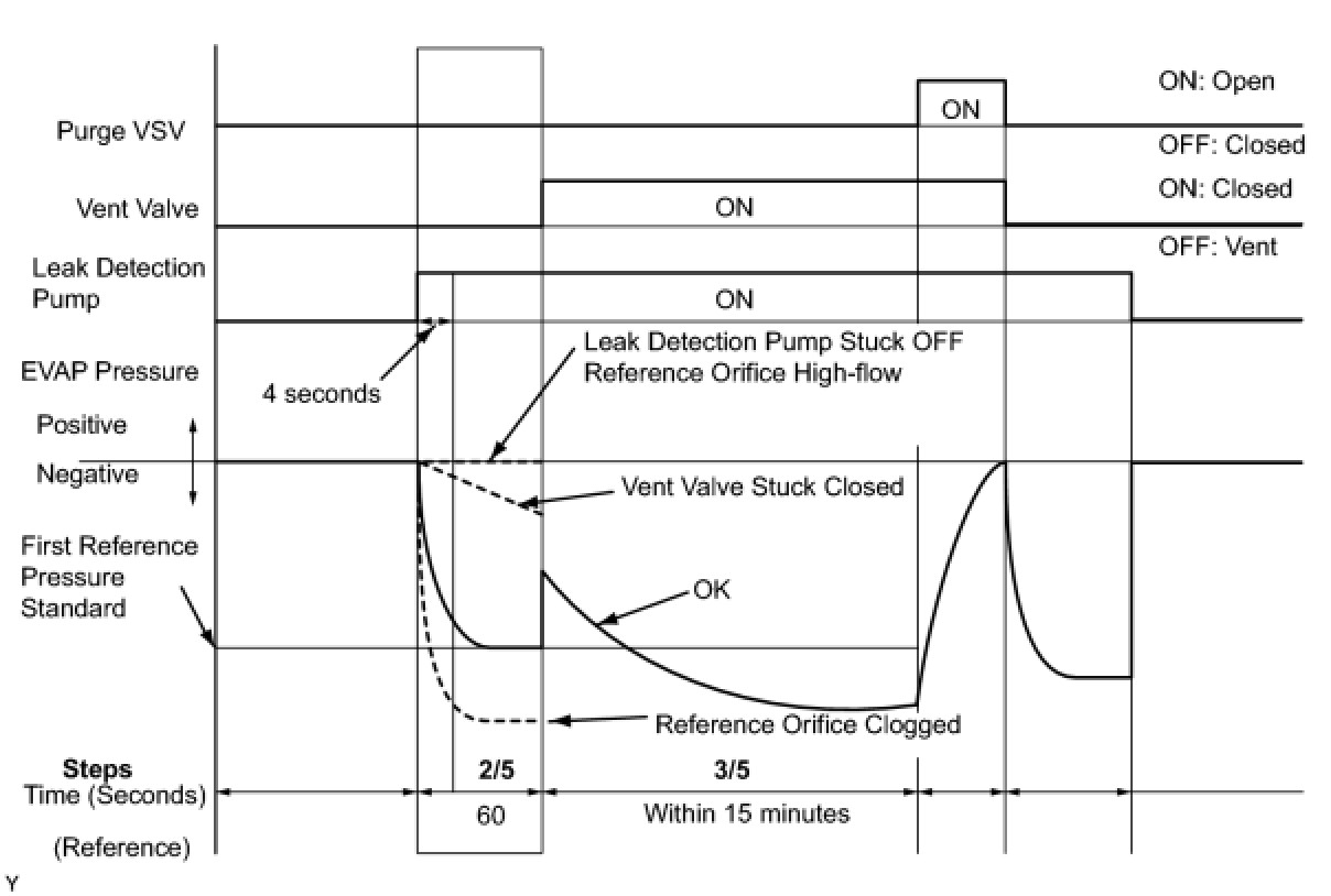 (b) Compare the EVAP pressure in step 3/5 and the second reference pressure (step 5/5).