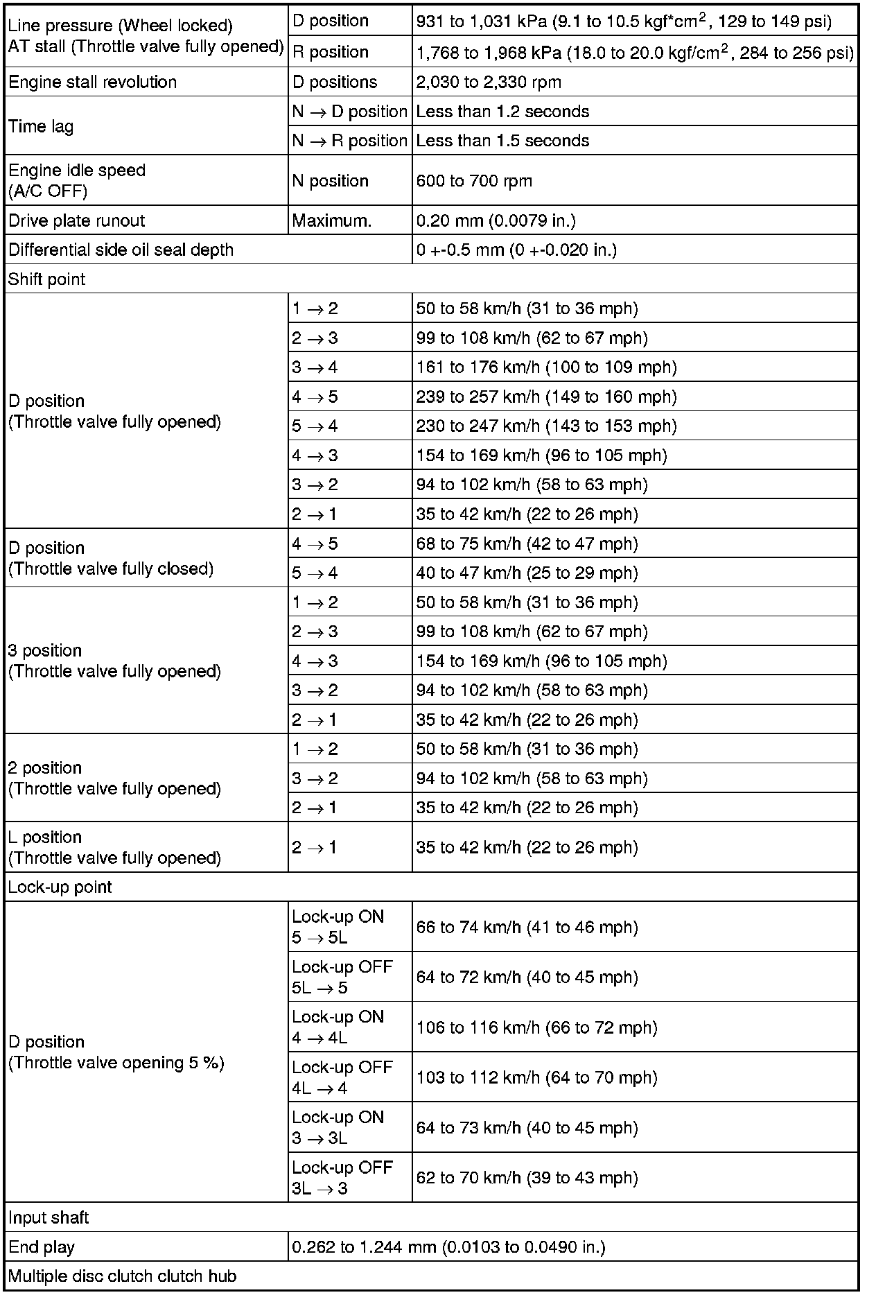 SERVICE SPECIFICATIONS: U151E AUTOMATIC TRANSAXLE: SERVICE DATA