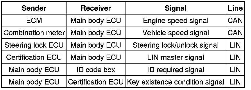 (g) The certification ECU judges and verifies the ID code, and transmits a key verification OK signal to the main body ECU. The buzzer in the combination meter sounds at the same time.