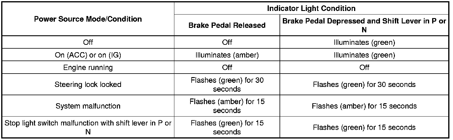 * The amber and green LEDs are for the indicator light. The driver can check the present power source mode and whether the engine can start or not by checking the illumination state of the indicator light.