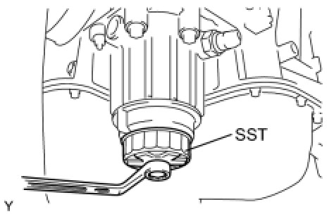 (c) Using SST, tighten the oil filter cap.