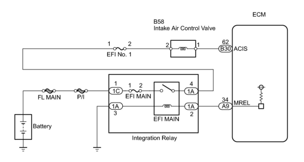 This circuit opens and closes the Intake Air Control Valve (IACV) in response to changes in the engine load in order to increase the intake efficiency (ACIS: Acoustic Control Induction System).