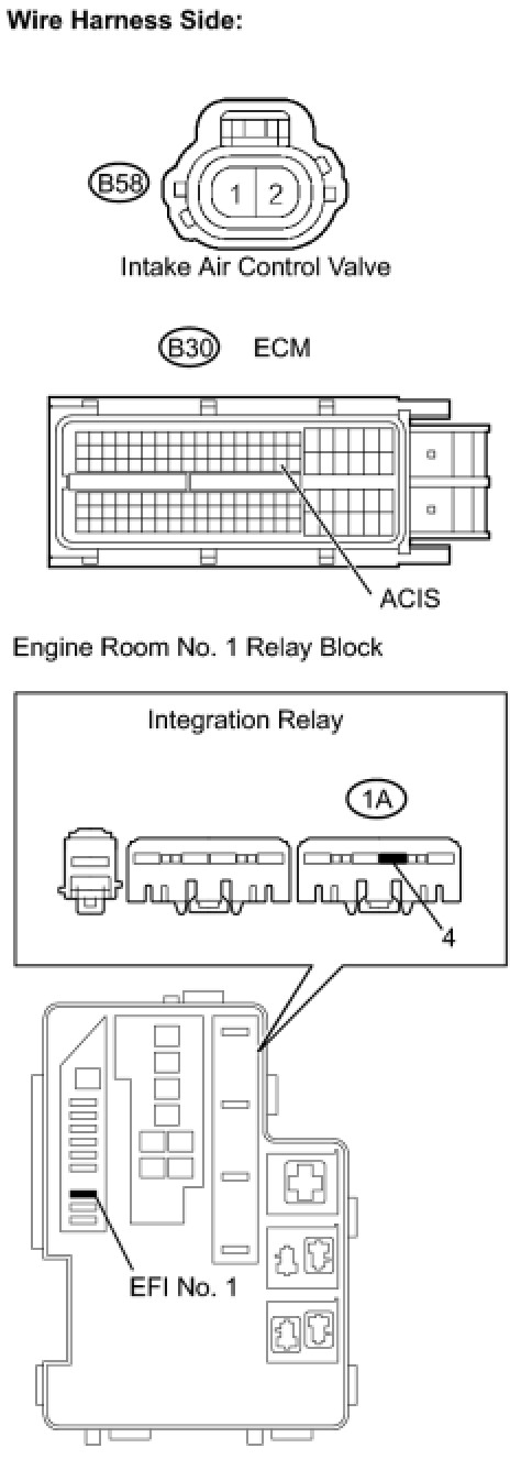 3. CHECK WIRE HARNESS (INTAKE AIR CONTROL VALVE - ECM, INTEGRATION RELAY)
