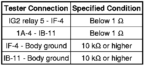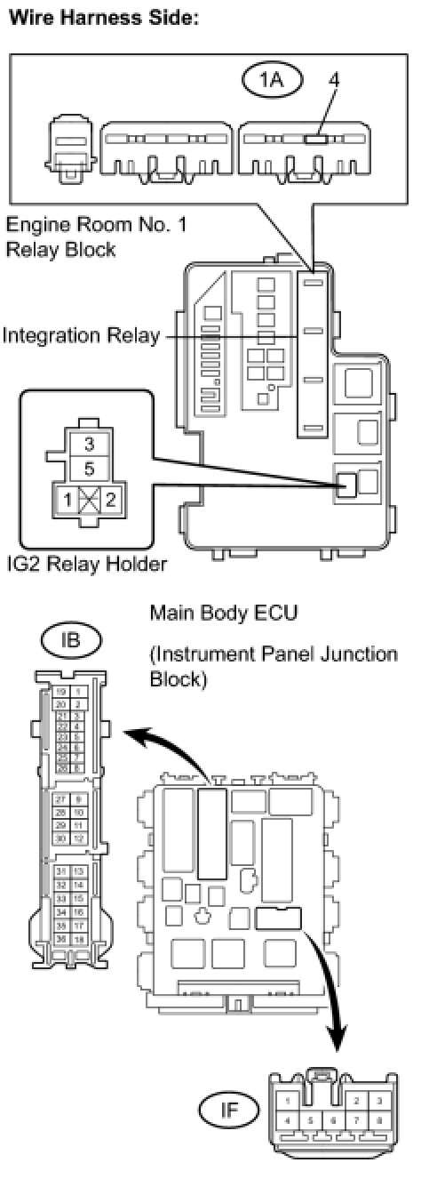 3. CHECK WIRE HARNESS (INSTRUMENT PANEL JUNCTION BLOCK - INTEGRATION RELAY AND IG2 RELAY)