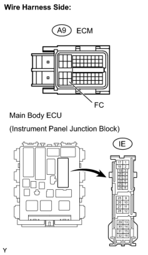 (b) Disconnect the IE connector from the instrument panel junction block.