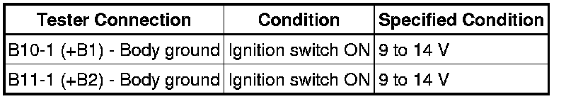 (c) If the result is not as specified, inspect the power source system (fusible link, fuse, wire harness and relay).