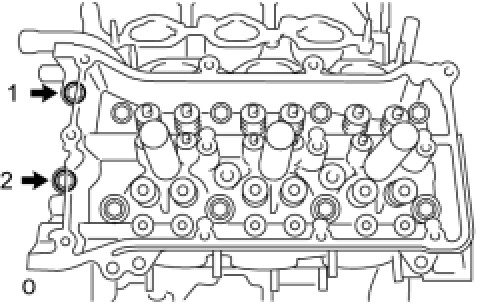 Mark the cylinder head bolt heads with paint as shown in the illustration.