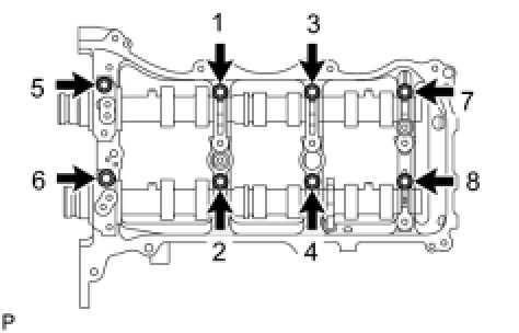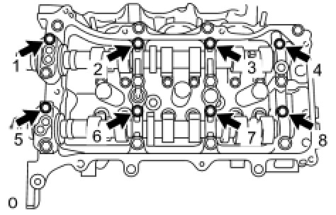 Temporarily install the 8 bolts in the order shown in the illustration.