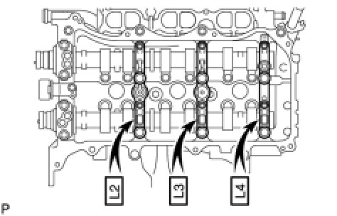 (b) Install the camshaft No. 3 and camshaft No. 4 to the camshaft housing.
