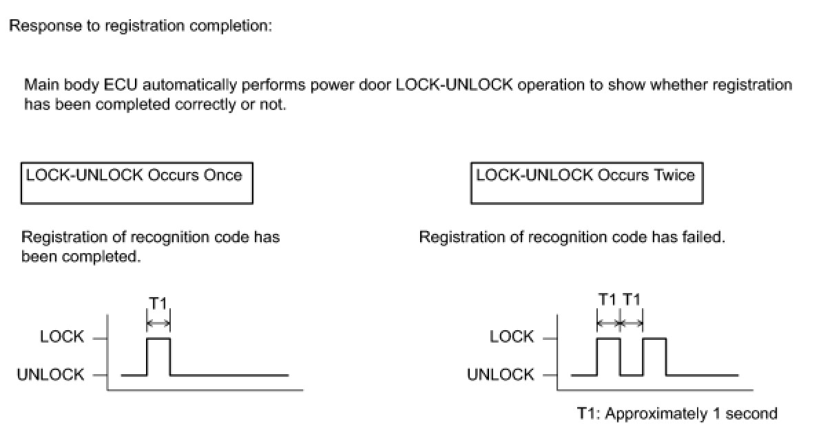 * If the LOCK-UNLOCK operation occurs twice, the registration of recognition code has failed. Perform registration procedures again from the beginning.