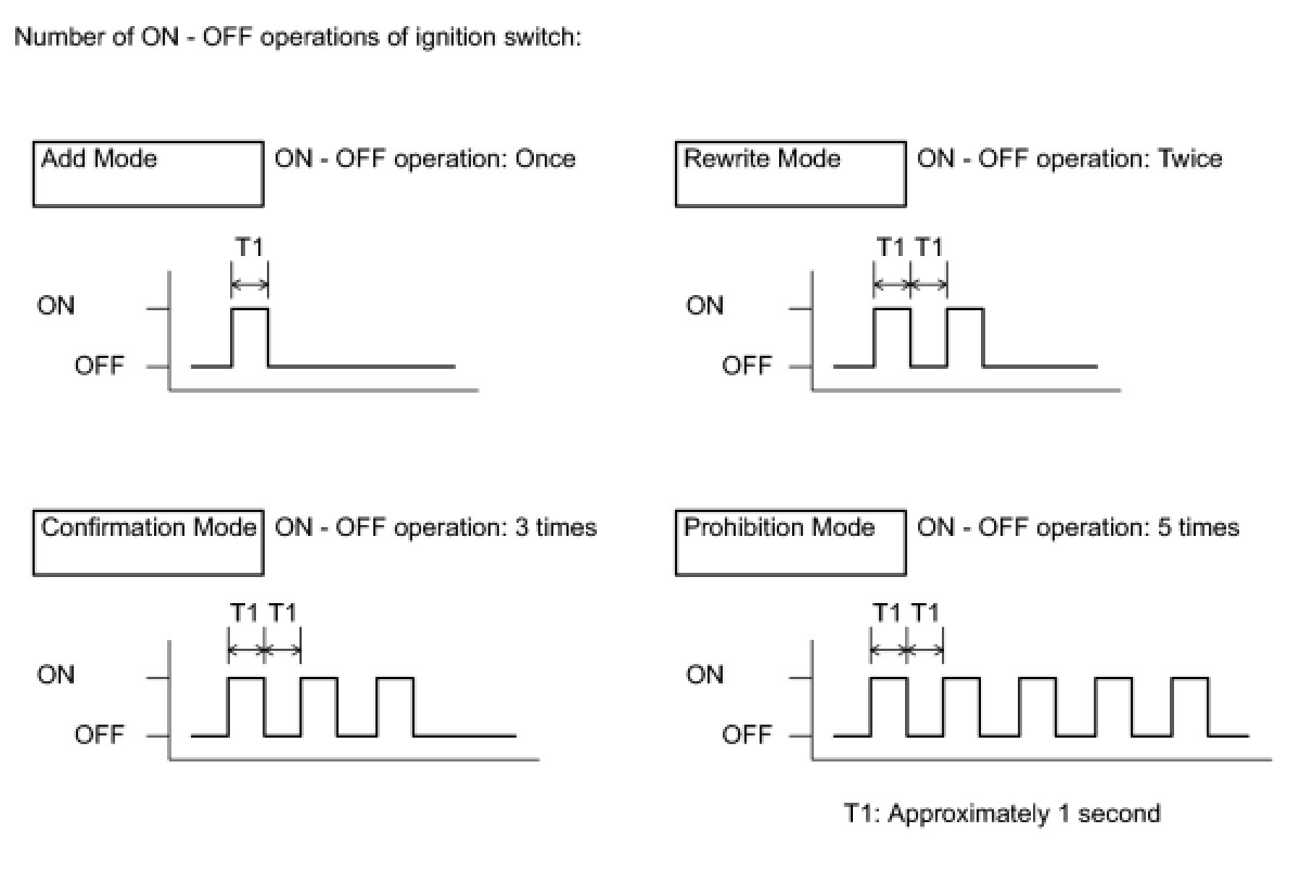 (b) Insert and remove the key into / from the ignition key cylinder twice (Insert -> Remove -> Insert -> Remove) within 5 seconds.