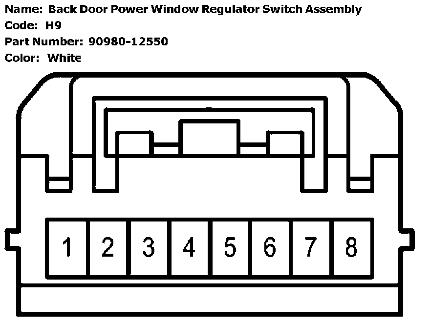 Back Door Power Window Regulator Switch Assembly