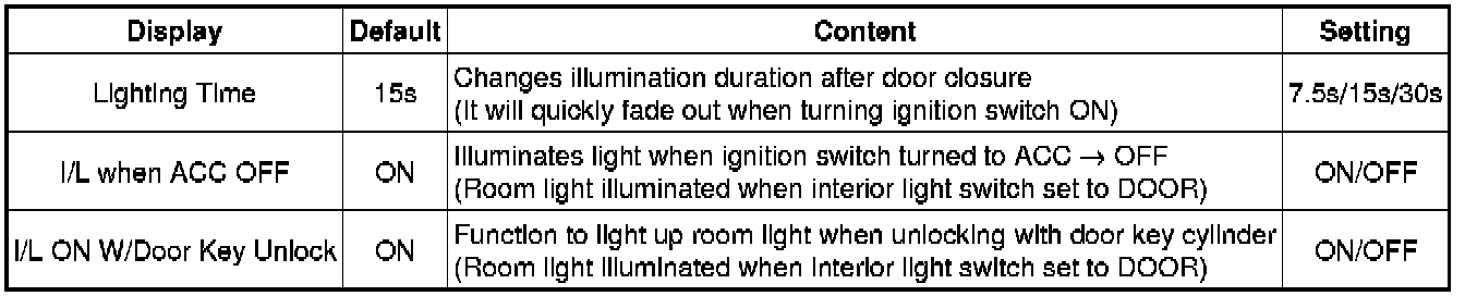 (d) Enter the following menus: Customize Setting / illuminated Entry or Light Control.