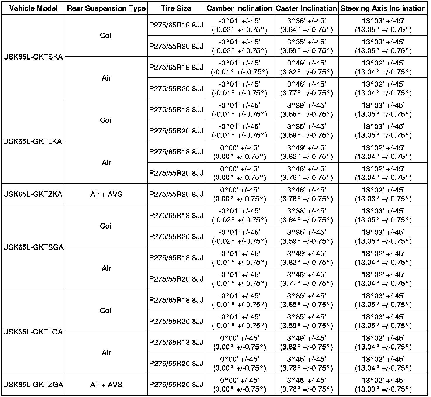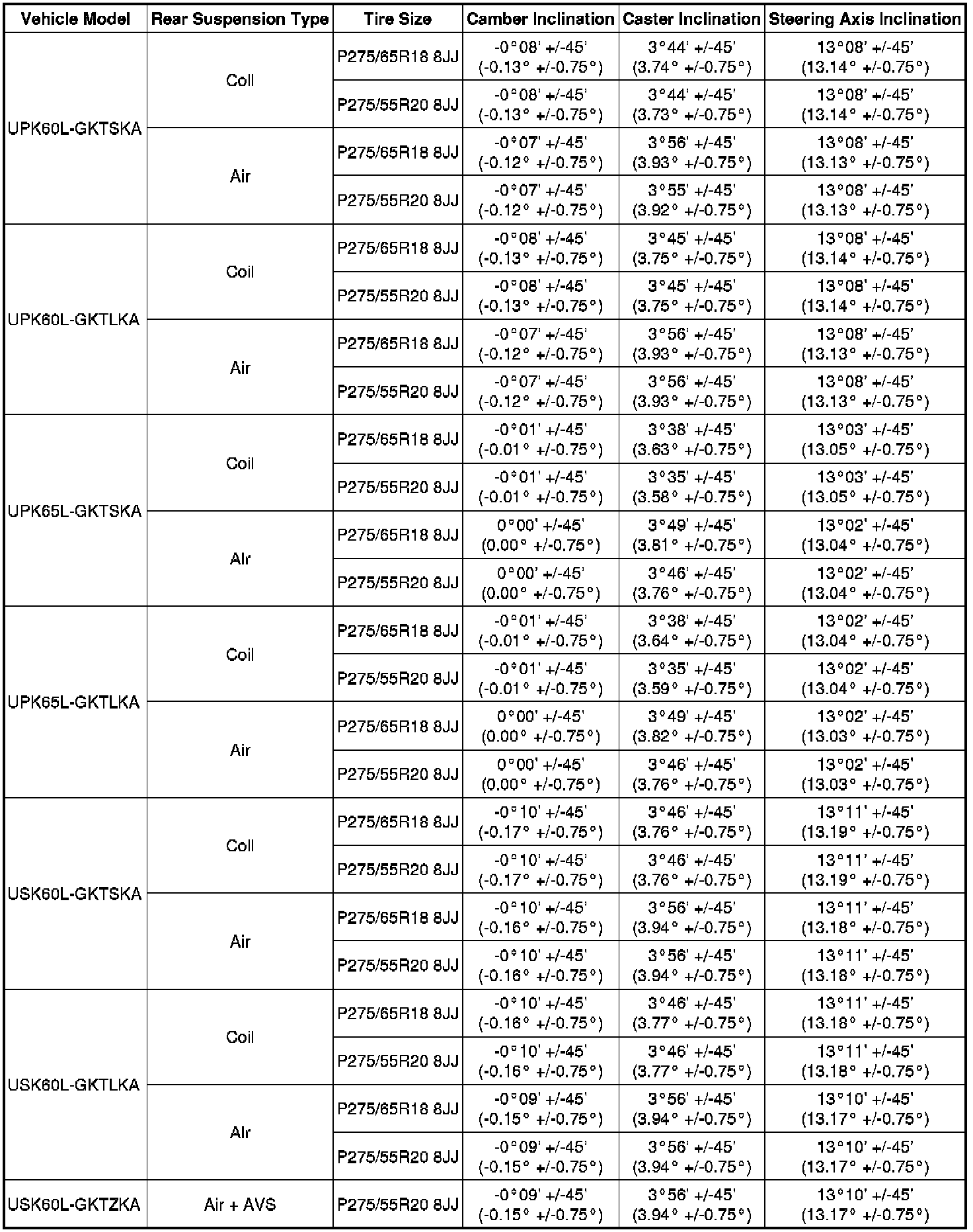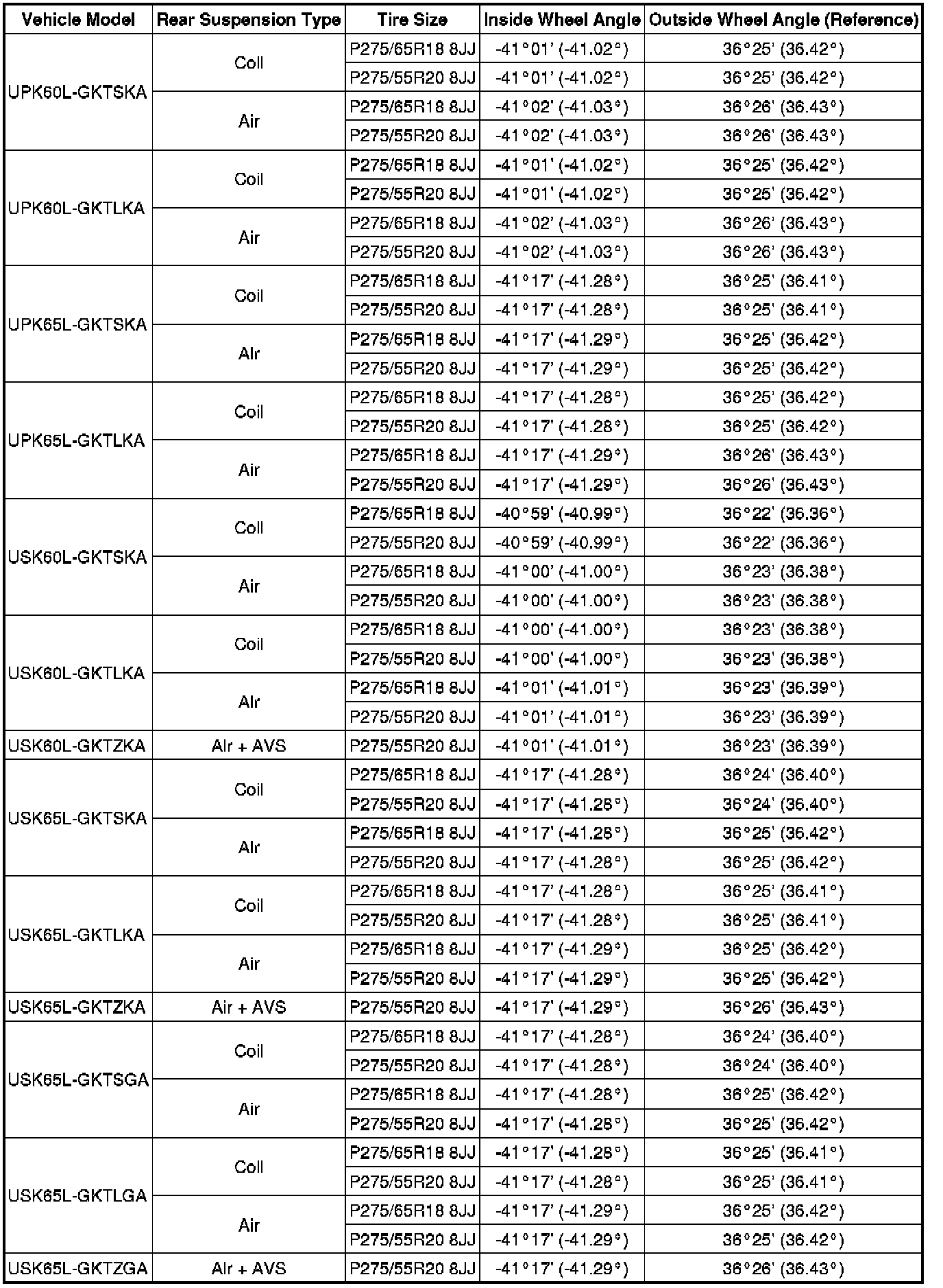 (1) Find the wheel alignment standard value applicable for the particular model.