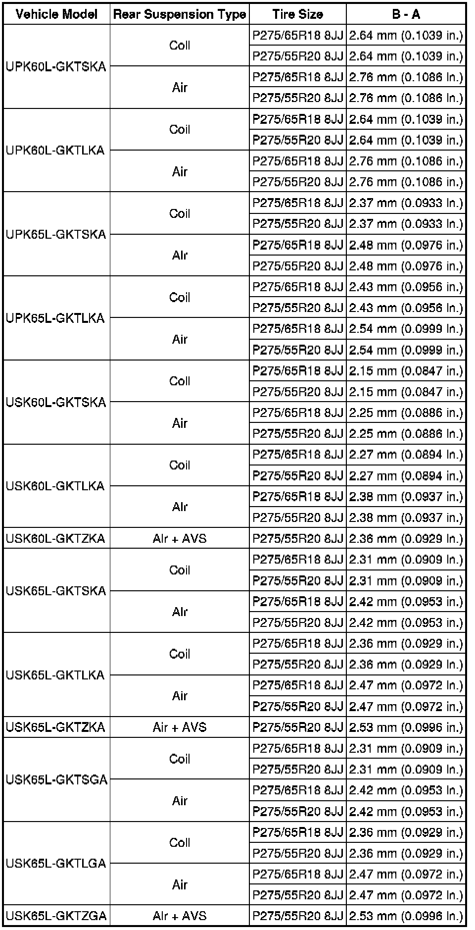 (b) If the vehicle height is not as specified, adjust the height by pressing down on the vehicle several times to stabilize the suspension.