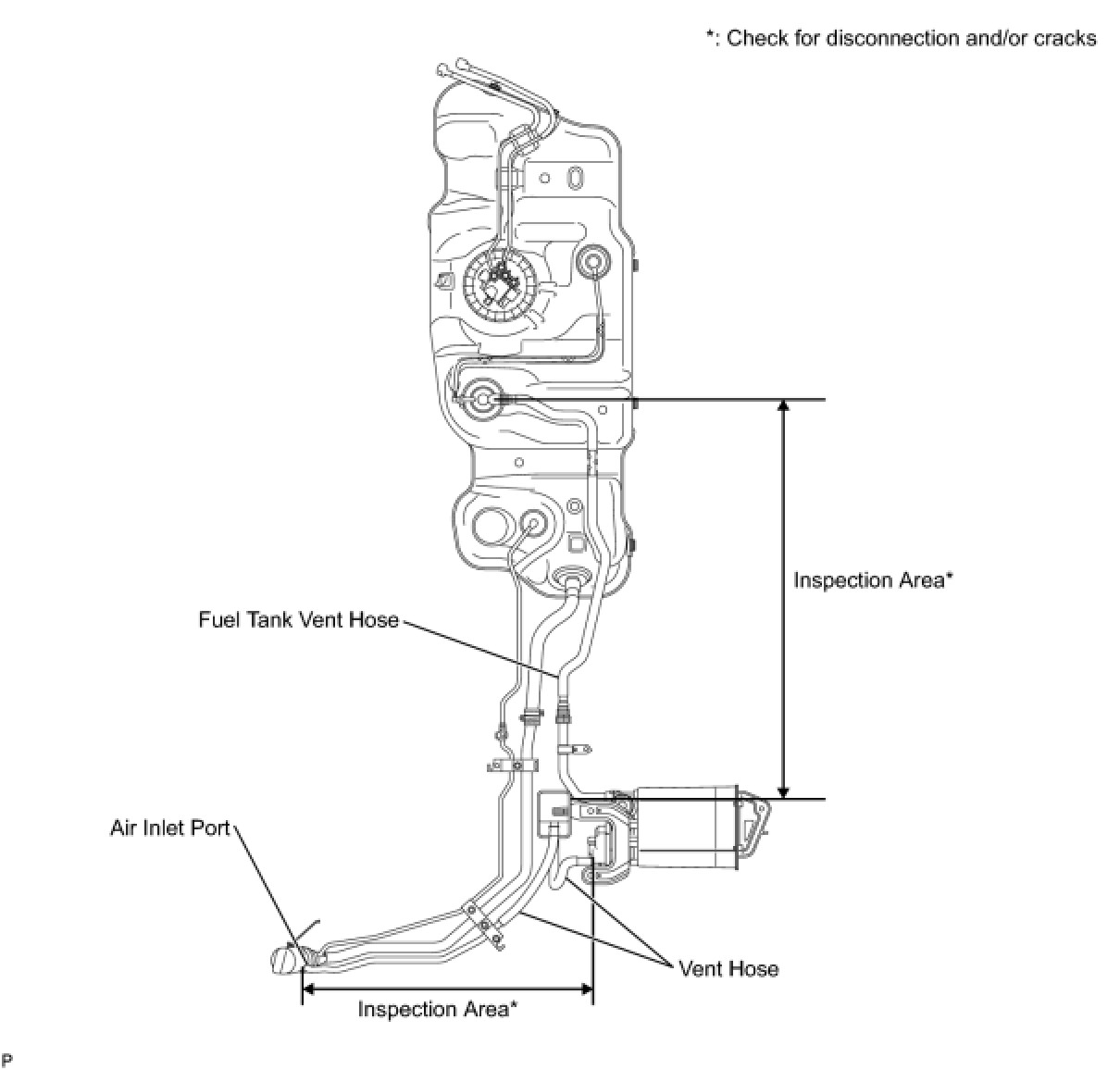 Disconnect the hose between the canister and the fuel tank from the canister. Block the canister side and conduct an inspection. In this way, the fuel tank can be excluded as an area suspected of causing fuel leaks.