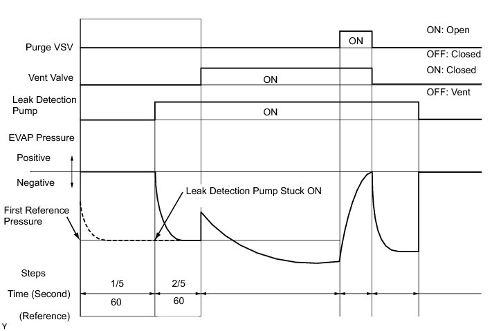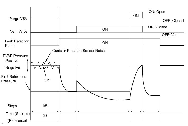 (b) Compare the EVAP pressure in step 3/5 and the second reference pressure (step 5/5).