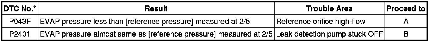 If the reference pressure difference between the first and second checks is greater than the specification, all the DTCs relating to the reference pressure (P043E, P043F, P2401, P2402 and P2419) are stored.