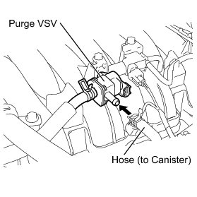 (b) Disconnect the hose (connected to the canister) from the purge VSV.
