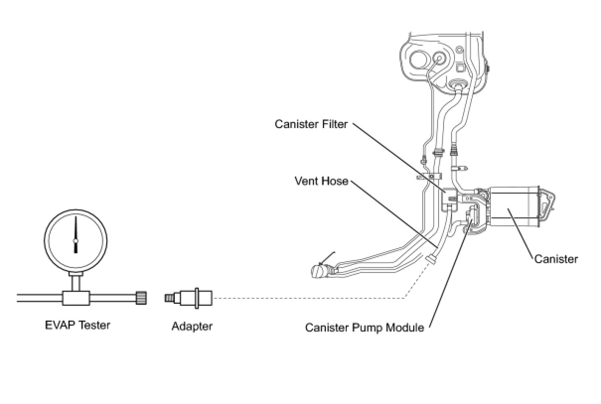 (b) Connect an EVAP tester to the canister pump module with an adapter.