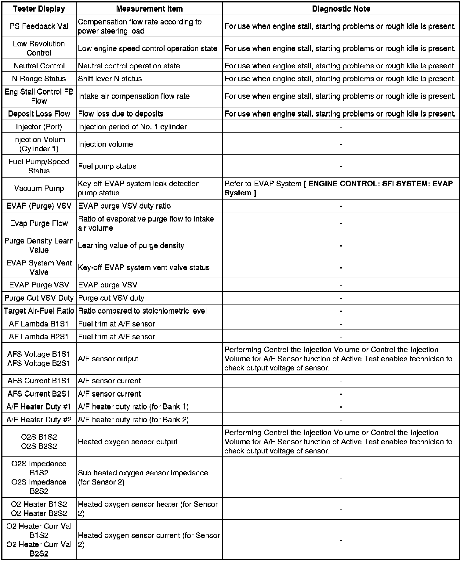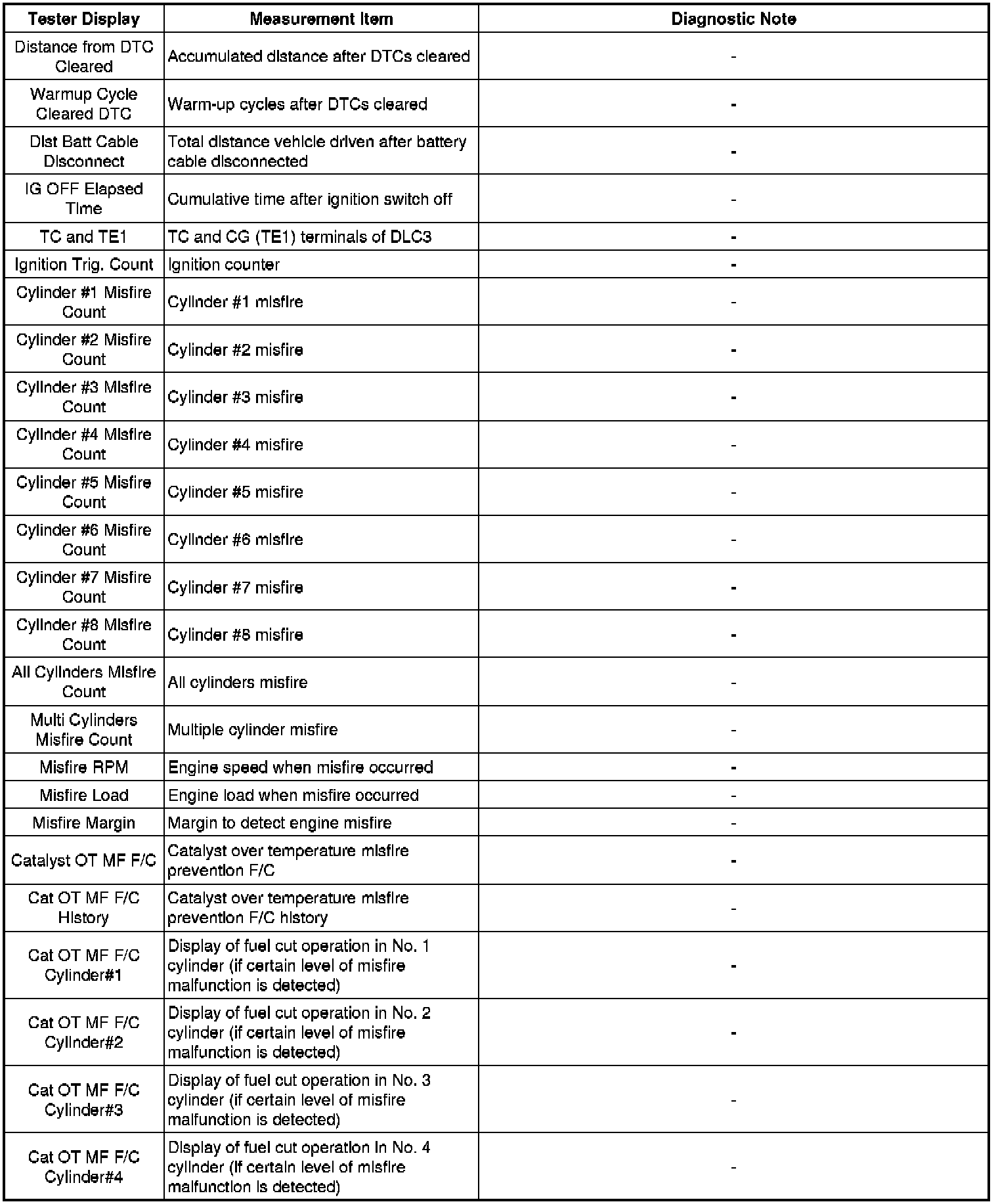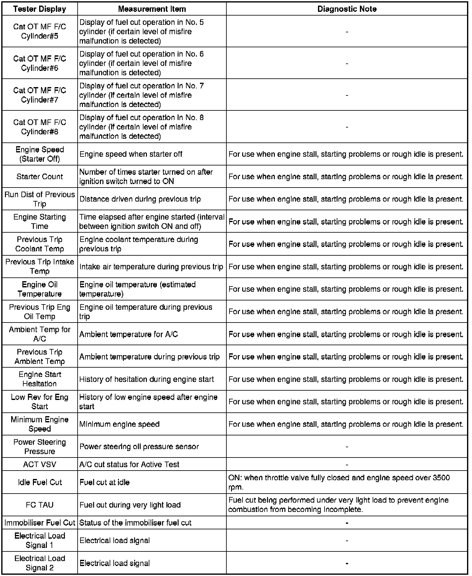 * Freeze frame data records the engine conditions (fuel system, calculated load, engine coolant temperature, fuel trim, engine speed, vehicle speed, etc.) when a malfunction is detected. When troubleshooting, it can help determine if the vehicle was moving or stationary, whether the engine was warmed up or not, whether the air-fuel ratio was lean or rich, and other data from the time the malfunction occurred.