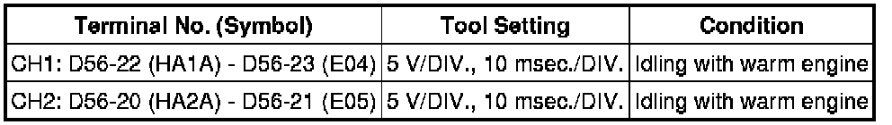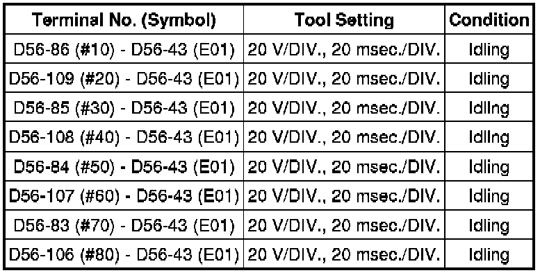 If the waveform is not similar to the illustration, check the waveform again after idling for 10 minutes or more.