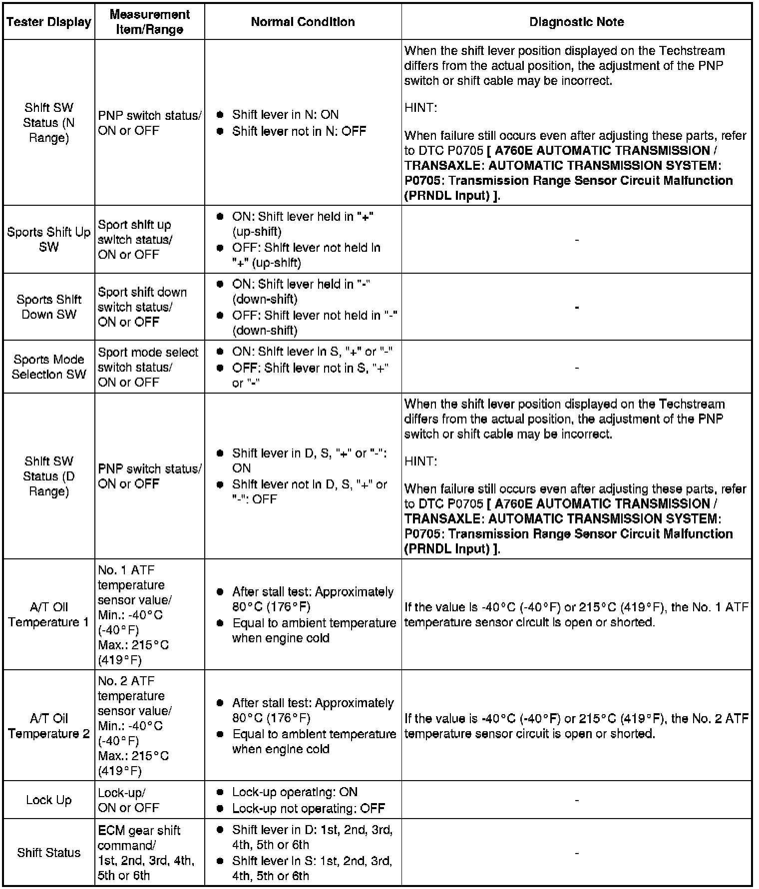 A760E AUTOMATIC TRANSMISSION / TRANSAXLE: AUTOMATIC TRANSMISSION SYSTEM: DATA LIST / ACTIVE TEST