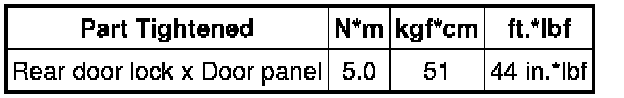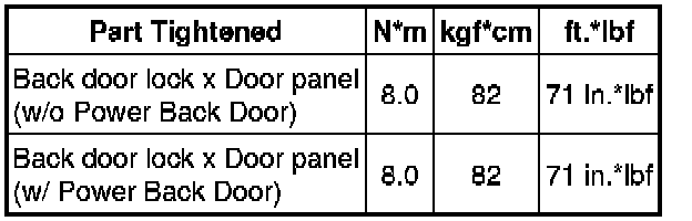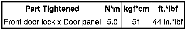SPECIFICATIONS: DOOR LOCK: TORQUE SPECIFICATIONS