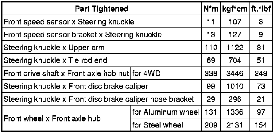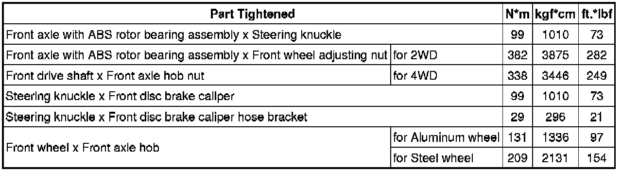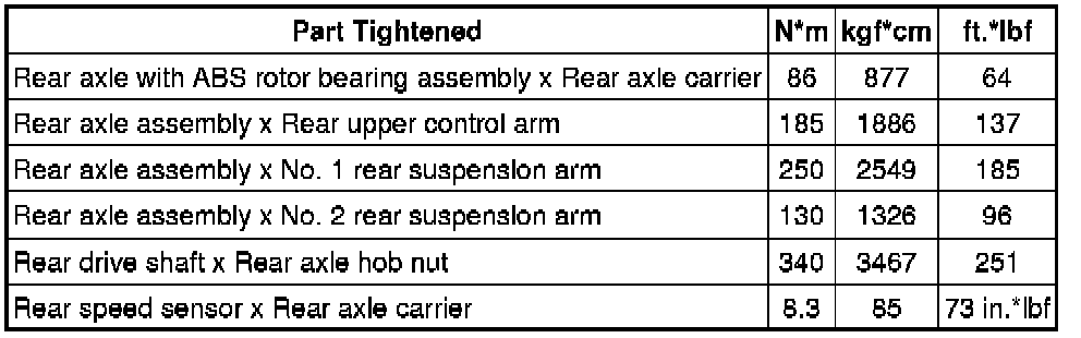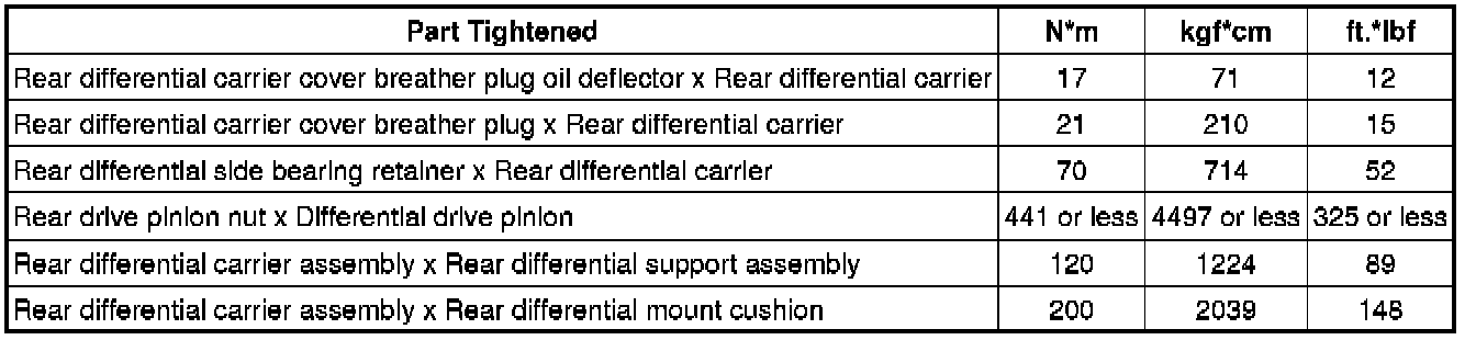 SPECIFICATIONS: AXLE AND DIFFERENTIAL: TORQUE SPECIFICATIONS